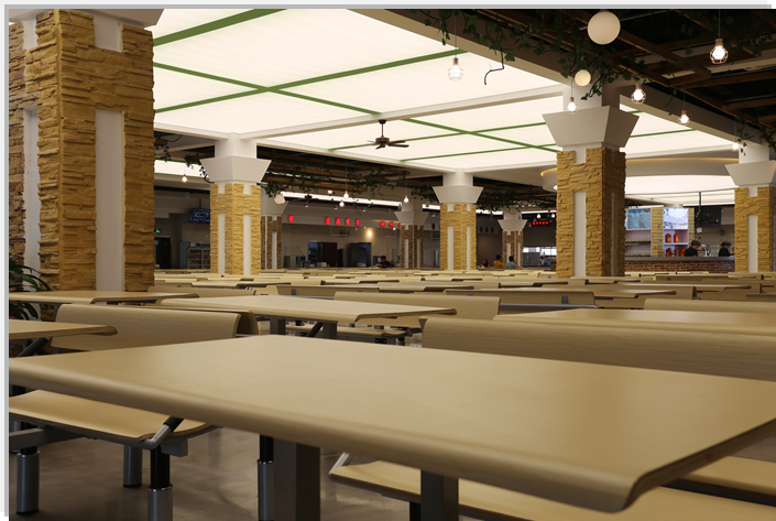 学校有三所大型食堂,2015年学校通过招标引进了三家具有较高资质和社会信誉度的餐饮服务企业,形成竞争性服务,同时投资近千万元对就餐环境进行了改造和提升。目前服务的三个食堂分别有风味特色餐厅、美食广场、大众学生快餐等形式。形成了环境优雅、卫生清洁、独具风格的具有理工特色的就餐环境。