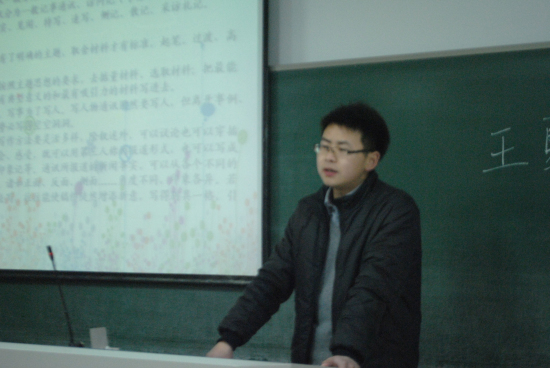 作为新网的负责人,王夏楠同学更多的从自身的成长经历跟大家分享新闻写作的经验。首先,他认为新闻报道是一项严谨的工作。一个新闻工作者要以新闻的真实性和准确性为原则,用更宽阔的视野对新闻做出及时的报道。接下来的过程中,他从通讯稿的概述、种类和写作方法进行详细讲解。通过形式多样的通讯稿进行实例分析,包括新闻写作的基本格式,内容以及主题意义的升华。在讲解的同时,与在座的同学以问答的形式进行互动,从个人理解分析中使大家更好地学会新闻写作。培训期间,他也强调了通讯稿虽然有一定的格式,但并非是一成不变的,这就要求大家以灵活的方法投入到新闻写作当中。 最后,王夏楠同学还简单地向大家介绍了新闻照片拍摄的注意事项。通过实例的分析,要求大家在拍照过程中做到清晰,拍摄角度的选择以及主题的明确性。