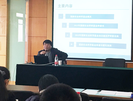 为积极动员教师申报国家社科基金,进一步提升2017年我校国家社科基金申报质量,12月9日上午,学科科研部、商学院联合邀请了浙江大学政府管理系系主任、博士生导师范柏乃教授来校做国家社科基金辅导培训讲座,培训会在行政楼603举办,来自各人文社科学院的50余名教师参加了培训。