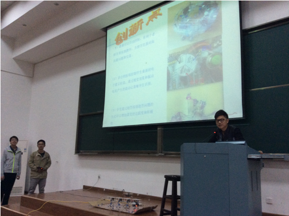 2014年4月13日下午,浙江大学第十九届大学生机械设计竞赛实物评审暨决赛在浙江大学玉泉校区举行。来自浙江大学及我校的20支代表队参加了决赛。本届竞赛的主题为“幻·梦课堂”,内容为“教室用设备和教具的设计与制作”,参赛学生们可根据对日常课堂教学情况的观察,或根据对未来若干年以后课堂教学环境和状态的设想,设计并制作出能够使课堂教学更加丰富、更具吸引力的机械装置。
