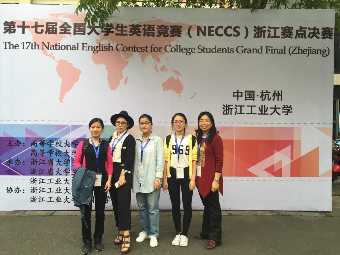 据悉,我院共有454名学生报名参全国大学生英语竞赛初赛,其中B类(英语专业本)报名人数118人,C类(非英语专业本科生)报名人数330人,D类(高职类)报名人数6人。按照全国竞赛组委会规定的获奖比率确定了全国一二三等奖共24人和学校一二三等奖共51人,并按照比率选拔了1位英语专业学生和2位非英语专业学生组成代表队,在紧张的赛前培训之后,由王欢和张怡玲两位老师带队,赴杭州参加浙江赛区决赛。浙江省决赛决赛分上、下午两个阶段,上午是笔试竞赛,下午是口试竞赛。根据笔试和口试的分数相加,最终评出A类特等奖1名,B类特等奖6名,C特等奖18名,D类特等奖4名。