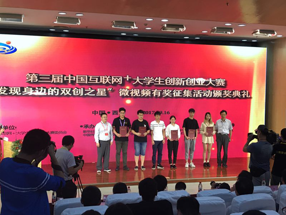 9月16日晚,第三届中国“互联网+”大学生创新创业大赛微视频有奖征集活动颁奖典礼在西安电子科技大学举行。教育部高教司范海林副司长、宋毅副巡视员、西安电子科技大学龙建成副书记及有关单位领导和嘉宾出席颁奖仪式。由我校指导老师廖海鹏指导的郝卓异创业团队创作的《制琴匠心》荣获大赛二等奖。