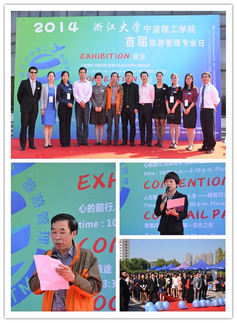在旅游日开幕式的现场,学院教务处副处长江美芬、团委书记应中元及管理学院主要领导均出席了活动,管理学院院长张忠根教授代表学院向所有参与活动的企业表示热烈的欢迎,并详细介绍了旅游管理多年来的办学成果,并强调旅游管理专业将在现有基础上进一步强化校企合作平台建设,以开放办学的姿态不断提升专业在业界和地区的影响力。威斯汀酒店人力资源总监邓美婷女士作为企业代表发言表示非常感谢理工学院近年来为企业为宁波旅游业输送了大量高水平的人才,在现有合作的基础上愿意进一步加深校企合作关系,真正实现校企合作平台化建设。