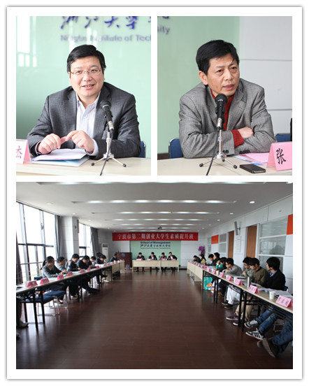 4月9日上午,开班仪式在浙江大学宁波理工学院南教学楼SA501举行。浙江大学宁波理工学院党委副书记黄光杰,宁波市人社局人才开发和市场处副处长张文溪等出席。开班仪式宁波市人才培训中心紧缺人才培训部部长俞忠耀主持。宁波市人社局人才开发和市场处副处长张文溪介绍了此次培训班的背景和筹备情况,并对学员们提出了培训要求。浙大宁波理工学院黄光杰副书记致辞并对学校人才培养理念和创业教育工作作了简要介绍,他指出,“创业成功是成功,创业不成功也是成功”,创业训练实践重在过程,创业者的成长经历比短暂成功更重要。