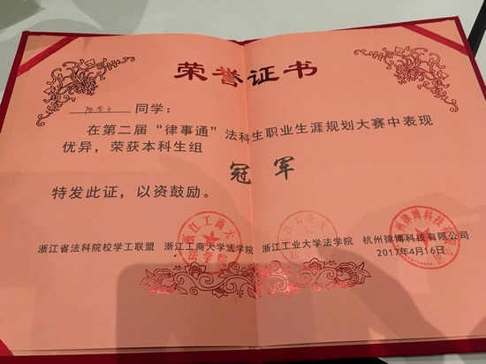 4月16日,第二届“律事通”法科生职业生涯规划大赛决赛在浙江工商大学图书馆报告厅圆满落幕,我校法政学院15级学生陈杏文和曾扬杨同学分获冠军和优胜奖。