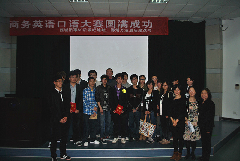 此次大赛共有5支队伍20名选手参加。比赛以西城旧事80后饭吧为题材,选手们要通过各自的营销方式去吸引顾客消费。过程中,每一组的参赛选手都以新颖独特的方式展开,或诙谐幽默,或专业正式。每组结束后,由外教Andy进行点评和提问,选手们临危不乱,从容不迫。比赛中途,由校十佳歌手亚军李吉昌献歌一曲,把比赛的气氛推向了高潮。各组选手的表演各具特色,精彩迭出,博得了台下评委和观众的阵阵掌声。最后,根据各组得分和表现情况,分别决出了冠亚季军以及最佳创意奖和最佳团体奖。