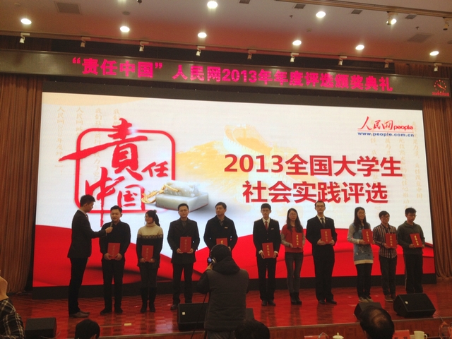 2013年在共青团中央与人民网主办的全国大学生社会实践评选活动中,我校“义乌外籍人士调研队”荣获三等奖。今年寒假期间调研队学生代表郑媛同学赴京参加颁奖典礼,并与来自全国各兄弟院校的获奖团队师生进行了座谈交流。