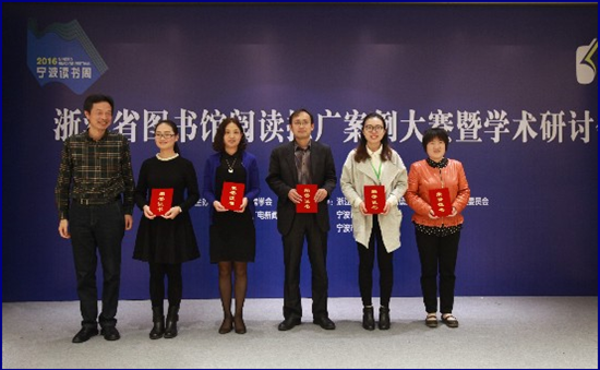 11月18日至19日,浙江省图书馆阅读推广案例大赛暨学术研讨会在宁波富邦大酒店举行。大赛组委会共收到全省公共图书馆和高校图书馆提交的53个参赛案例,参赛案例的海报在2016宁波读书周的开幕式现场进行了集中展出。在进入决赛的26个案例中,我馆“基于数据挖掘的热门图书阅读推广”案例获得总分第三名,荣获二等奖。
