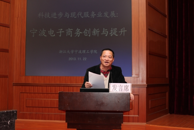 2013年11月22日下午,在我校金宗城法学教学中心顺利召开了由我校社科联主办、经贸学院承办的宁波市社科界第四届学术大会之科技进步与现代服务业发展专题会议。本次学术大会专场活动特别选择了“宁波电子商务创新与提升”作为研讨会主题。