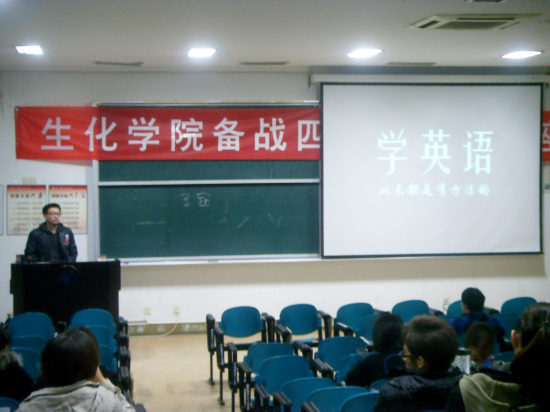 11月23日晚,生化学院邀请宁波新东方英语机构的老师在SC204为备战四六级考试的学生开展了四六级考前培训讲座。学院100余人参加了此次讲座。
