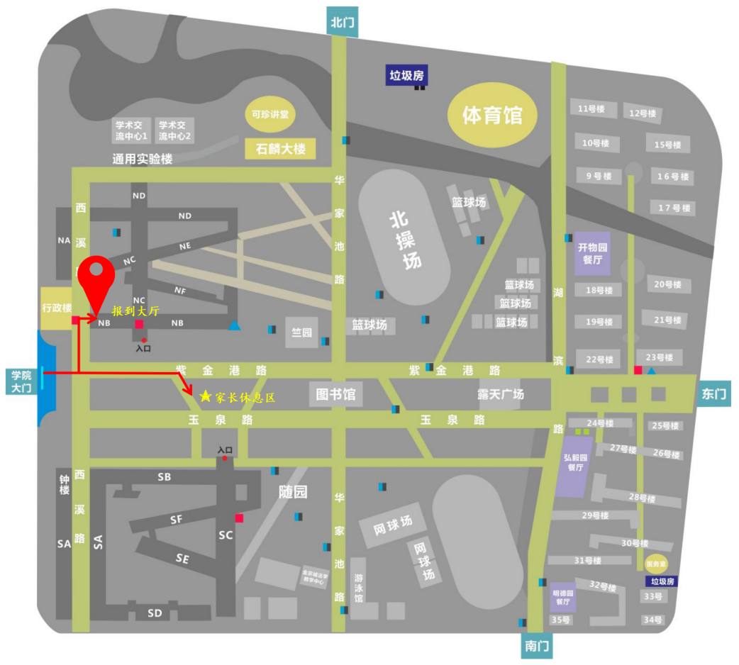 学校在图书馆西侧广场安排了家长休息区,并为家长提供招生咨询服务,学校校史馆也安排了讲解服务,届时请根据现场工作人员指引。