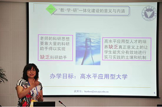“乐为人梯”的她,结合自己的科研基础,将科研成果转化成教学内容,提出了“教-学-研”一体化建设的人才培养理念,主张吸收学生参与到教师的科学研究中,让学生成为紧跟时代的科学研究与技术应用的实践者。她分享她的科研成果,甘当学生学术探索路上的“人梯”,在她的研究领域,竟汇聚起数十位本科生团队。以此作为出发点的浙江省重点建设教材《综合化学实验》,吸收了大量教师的科研成果;师生共同撰写的教研文“Adding Value: Strengthening the Relationship among Teaching, Learning and Researching in Undergraduate Engineering Education”在EI收录的刊物上正式发表,并在国际会议中做口头报告;仪器分析课程教改成果得到SCI收录。国际顶尖教学研究相关的杂志J. Chem. Edu.审稿人对这一教学方法的变革做出了高度评价,其认为,该课程的做法具有很好的借鉴意义,可以推广至整个化学学科相关课程的建设。化学类教研教改知名杂志《化学教育》审稿人也就这一方法做出评论,“化学类通识课具有一定特色,具有很好的借鉴意义,值得交流。选择案例详细介绍并把学生的成果和优秀作品予以展示的做法有创新性。”